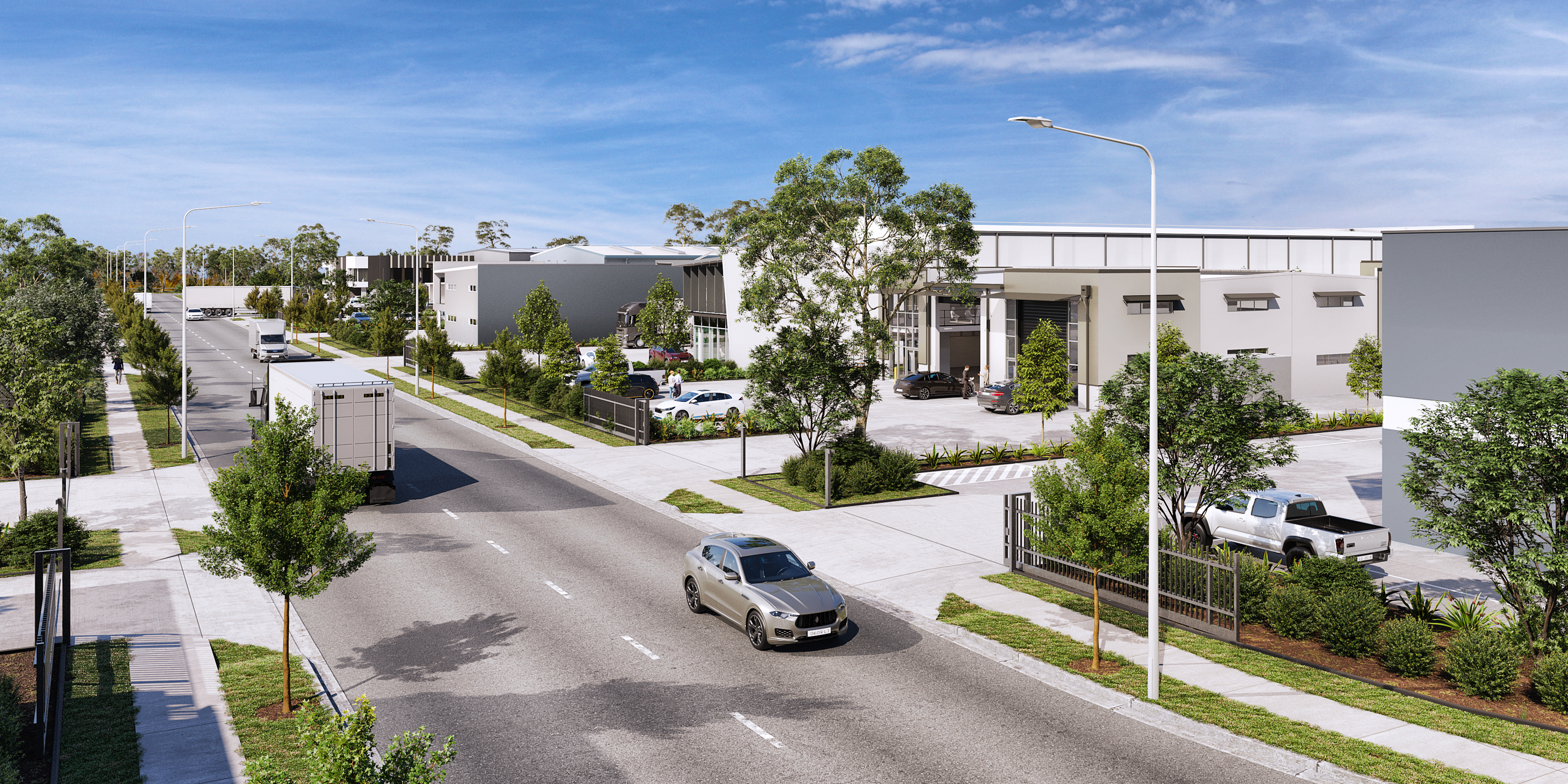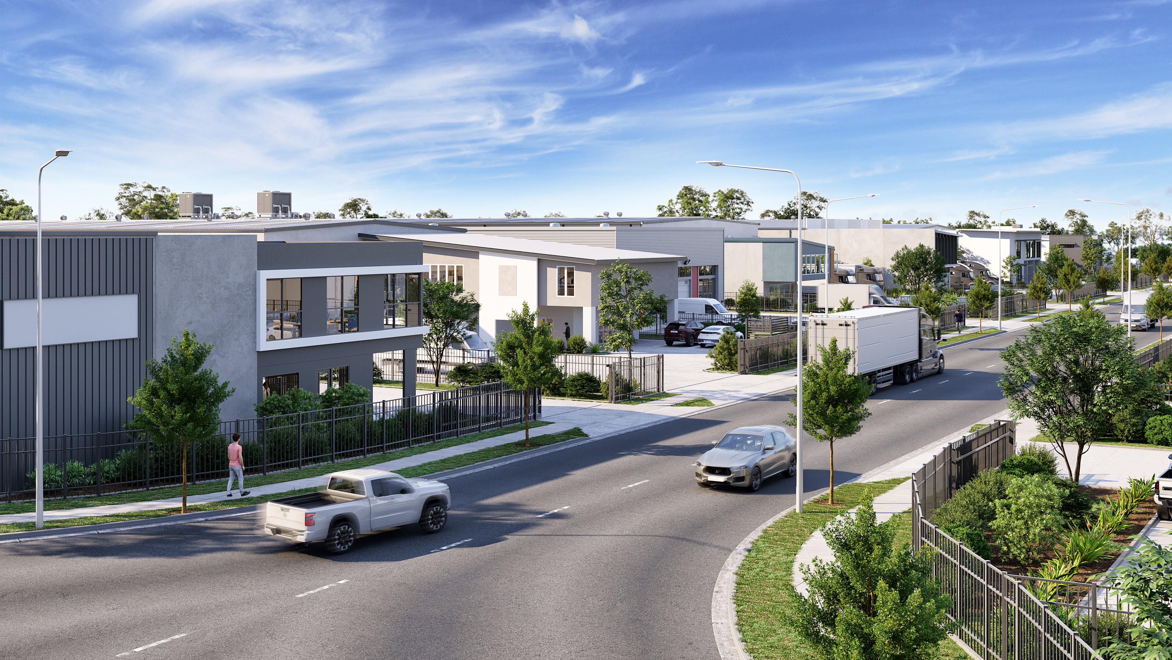 We designed the full 17-lot subdivision layout, establishing site flow, access, and lot configuration to suit industrial users. This masterplan became the foundation for all marketing visuals and development discussions.